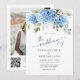 Elegant Watercolor Blue Hydrangea Photo QR Wedding Invitation