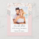 this design features a floral elegant minimalist botanical, a blush pink rose flower bouquet, a botanical garden greenery foliage, a stylish trendy calligraphy script, a photo picture couple template, an engagement engaged picture layout, a simplistic elegance classic design, a budget-friendly postcard template, minimal minimal calligraphy typography, a simple photo save the date