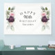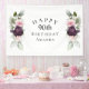 Celebrate a special milestone birthday with this beautifully feminine banner that has floral borders in burgundy and pink roses on each side of the elegantly placed text. Colours include pale blush pink, deep burgundy red and plum mixed with ethereal greenery and tiny white accent flowers. Personalise the text template with your information. Shown here for celebrating a 90th birthday, you can edit the age to any age birthday!