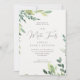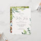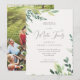 Elegant watercolor botanical family reunion invitation includes pretty greenery and classic calligraphy script, with a full photo back.