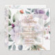 Introducing our minimalist and trendy wedding invitation, featuring a pretty flowers in light purple and green leaves and more, with an elegant background , creating a clean and stylish look for your special day.