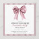 Announce the upcoming bachelorette celebration with this stunning invitation. The centerpiece is a delicate pink watercolor bow, symbolizing femininity and celebration. Complementing the bow is a refined mauve and white striped border, offering a timeless aesthetic. This card is designed to convey elegance and excitement for the bride's special occasion. Easily personalize with your event information and share the joy with all attendees.