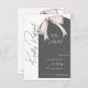 Personalise this simple and modern arch formal wedding invitation RSVP card, designed to match the arch shape or acrylic arch wedding invitation designs in our storefront, featuring elegant coquette aesthetic watercolor white bow, playful script monochrome typography and charcoal grey arch design on the front side, and wedding website QR code with instructions to RSVP online on the back side. Send your favourite people a fun first peek into the vibe of your wedding day with this unique enclosure card! Easy to edit template - simply enter your wording details, upload your QR code (or delete back side design if not needed). You may even make further changes, move design elements about, and make it your own by clicking the "Edit using design tool" button at the bottom of the "Personalise" window! Custom design requests and template questions are always welcome - click the "message" button, or email directly at: contact@figandlilyco.com. Design lovingly created by Fig & Lily Studios... sending blessings and thanks ♥