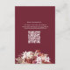 The corner florals include burgundy roses, blush peonies, and eucalyptus leaves, hand-painted in watercolor for a soft, luxurious look. Easily customize each section — ceremony, accommodation, transportation, registry, and dress code — and include your personalized QR code linking guests to your wedding website for more information.
