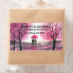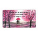 Beautiful, elegant watercolor cherry blossom wedding Return Labels. Romantic couple with a red umbrella art. Sakura, pink japanese, oriental flowers. You can personalise with your names and address.