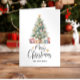 Send warm wishes with this customisable holiday card featuring a hand-painted elegant Christmas tree surrounded by wrapped presents. Personalise the card by adding a custom greeting, and your family name.