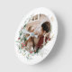 Elegant watercolor Christmas wreath photo Round Cl Clock