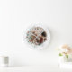 Elegant Christmas watercolor wreath Christmas wall clock. Watercolor artwork with your photo.