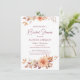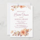 The invitation features a warm light orange background adorned with bouquets of autumn leaves and flowers in rich shades of orange, brown, burgundy and yellow. The elegant design beautifully captures the essence of the fall season. Editable text allows you to customise every detail to perfectly fit your event. The back is also decorated with flowers. Whether you're planning a bridal shower or another special occasion like a baby shower, this invitation sets the perfect tone for a memorable celebration.