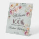 Elegant Watercolor Floral 100th Birthday Welcome Pedestal Sign