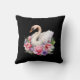 Elegant Watercolor Floral Black Swan Daughter name Cushion