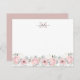 Elegant Watercolor Floral Blush Pink Monogram Note Card