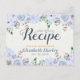 Elegant Vintage Light Blue Lavender Colour Watercolor Floral Bridal Shower Recipe Card Templates.