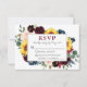 Modern Elegant Watercolor Burgundy Floral Wedding RSVP Card includes burgundy roses, pink roses, red flowers, blue flowers, sunflowers, eucalyptus leaves and botanical greenery.