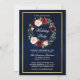 Elegant Watercolor Blue Background with Watercolor Burgundy Marsala Floral Wreath Holiday Party Invitation. Includes beautiful roses and botanical greenery. Gold Frame.