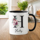Elegant Watercolor Floral Initial Name Monogram Mug