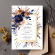 Elegant Watercolor Floral Navy Blue Rust Wedding Invitation
