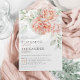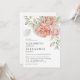 With a watercolor bouquet of pink flowers and soft greenery, and left-justified text, this floral wedding invitation combines classic romantic elegance with modern style for timelessness that will impress your guests. The names of the bride and groom in classy fonts are linked by an elegant script ampersand.