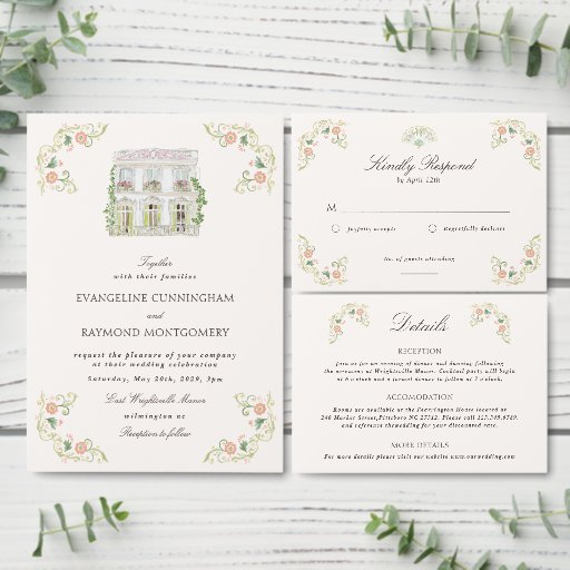 Wedding menu card featuring beautiful rococo inspired watercolor illustrations paired with elegant script and serif fonts in which all your personalized information is written in. You can find more matching products from this stunning wedding collection in our store.