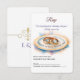Celebrate your love with this romantic watercolor wedding invitation featuring gold wedding rings on a pastel plate with golden rose accents. A soft, poetic design perfect for elegant glam or garden-themed weddings. Fully customisable with your own text and details.
