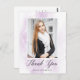 Thank friends and family for coming to your graduation by sending them a stylish photo thank you postcard. The graduation thank you postcards feature a purple watercolor background, Thank You in a trendy script font, and placeholders for your custom text and image.