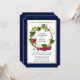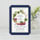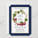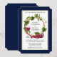 Modern Elegant Watercolor Grapes and Vines Wood Wreath Wedding Invitation - Navy Blue Background and Gold Frame