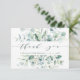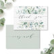 This thank you card features painted watercolor eucalyptus, botanical green, and light blue leaves with "very much" script on the back. Perfect for weddings, birthdays, graduations, and other events.