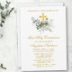 Modern Elegant First Holy Communion Invitation includes watercolor eucalyptus leaves and other beautiful botanical greenery foliage. Gold Cross.