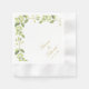 Custom-designed wedding napkins featuring watercolor greenery wreath with elegant gold script design.