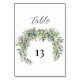 Elegant Watercolor Greenery Wedding Table Number are perfect for spring, summer and fall weddings. The table number features stylish typography on a simple white background surrounded by a wreath made of green leaves. The beautiful design is modern and elegant, giving the sign a classy feel.