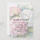This elegant wedding design features beautiful watercolor hydrangea blooms in soft shades of pink, blush, and delicate white, with a hint of blue, surrounded by lush green leaves. The romantic floral arrangement creates a timeless and sophisticated look that is perfect for wedding invitations, bridal shower stationery, rehearsal dinner invites, or other wedding celebration décor. The soft watercolor style adds a graceful garden-inspired charm, making it ideal for spring and summer weddings or any couple who loves classic floral elegance.