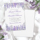 This charming bridal shower invitation features a classic layout with delicate watercolor lavender flowers adorning the top and bottom. A whimsical yet sophisticated design, it showcases lavender stems in various purple hues, complemented by soft green leaves for a fresh garden feel.