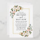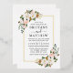 Modern Elegant Watercolor Pink White Floral Wedding Invitation includes pink roses, white magnolias, eucalyptus leaves, cotton and botanical greenery. Gold Foil Frame.