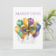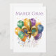 Festive New Orleans Mardi Gras themed party favor in green gold and purple, the traditional colors of Fat Tuesday carnival. Perfect invite for NOLA themed parties. Fleur De Lis and balloon design.