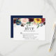 Modern Elegant Watercolor Mixed Floral Wedding RSVP Card includes burgundy roses, pink roses, red flowers, blue flowers, sunflowers, eucalyptus leaves and botanical greenery. Navy Blue Back.
