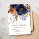 Elegant Watercolor Navy Blue Terracotta Wedding Invitation