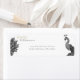 A hand-painted watercolor peacock depicted in classic black and white designed on an elegant return address label