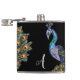 With its bright feathers and magnificent plumage, this elegant peacock represents strength and confidence with the perfect balance of delicate yet striking composure. This is a fancy and stylish flask with a magnificent peacock against a black background; a perfect little gift or a fun personal item! Original artistry hand-painted in watercolor.