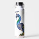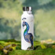 A beautiful hand-painted watercolor peacock on a fancy modern bottle!