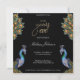With its bright feathers and magnificent plumage, this elegant peacock represents strength and confidence with the perfect balance of delicate yet striking composure. Invite guests to your New Year's Party with this stylishly formal and elegant peacock designed invitation! Completely customisable! Original artistry hand-painted in watercolor.