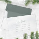 This design features an elegant Christmas custom envelope, with a watercolor pine trees, winter green, with the return address on the back flap, with a simple minimalist, script typography, with woodland forest, a seasonal design, a classic calligraphy style.