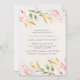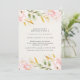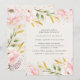 Elegant and modern floral bridal shower invitation features watercolor flowers in soft shades of pink and gold, with lush green botanical leaves. Personalise with your bridal shower details in elegant black lettering.