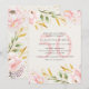 Elegant and modern floral 50th birthday party invitation features watercolor flowers in soft shades of pink and gold, with lush green botanical leaves. Personalise with your birthday details in elegant black lettering.