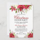 Elegant Watercolor Poinsettia Christmas Party Red Invitation