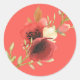 Elegant Watercolor Rose Bouquet Round Sticker on a Coral Background.