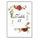 Elegant Watercolor Rose Bouquet Table Number Card.