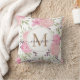 Elegant Watercolor Roses Floral Gold Monogrammed Cushion