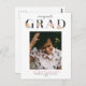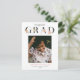 A modern and elegant graduation announcement featuring a photo of the graduate with the headline "congrats Grad" - grad in charcoal serif font, decorated with posies of watercolor roses in pink and orange. Personalise further with your graduate's name and details in pink and charcoal.