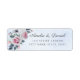 Elegant wedding return address labels design featuring pink and white watercolor flowers on a light blue background.