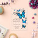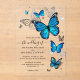 Love is in bloom with these stunning blue butterfly invitations on clear acrylic cards! This editable DIY template is perfect for blue butterfly weddings, a cute baby shower for a girl, once upon a time bridal shower, fairy tale princess quinceañera, royal Cinderella sweet 16 birthday party, and other magical days where these garden beauties bring joy. Featuring original watercolor nature art by Raphaela Wilson, each blue monarch butterfly boasts intricate boho wildflower and rose patterns on its delicate wings, adding a touch of unique artistry to your invitation. Personalise the chic calligraphy script and modern fonts to make it truly yours, or modify the whimsical design further to change the typography to what best suits your fancy. Even reposition the glitter sparkle butterflies, or reveal a rustic stone texture for the background. Enjoy! Category: DIY acrylic invitations wedding with butterflies; blue butterfly acrylic invitations quince; and elegant acrylic wedding invitations. Blue butterfly wedding theme colours: royal blue, sapphire, dark blue, navy, black, light grey, dark grey, vintage silver, black and white.